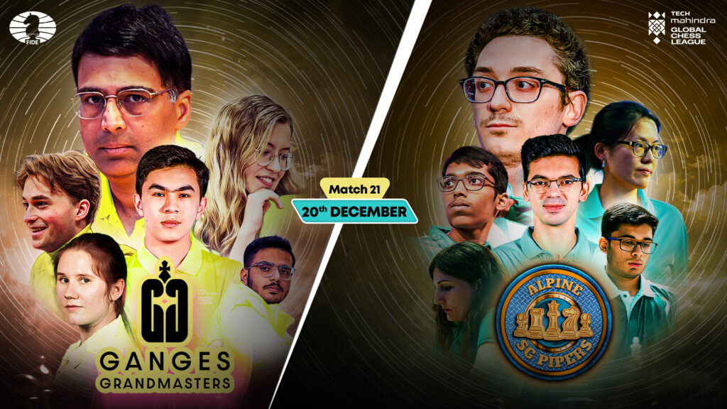 Ganges Grandmasters 10-9 Alpine SG Pipers GM Anand, Viswanathan 1-1 GM Caruana, Fabiano GM Keymer, Vincent 3-0 GM Giri, Anish GM Sindarov, Javokhir 3-0 GM Praggnanandhaa R GM Shuvalova, Polina 0-4 GM Hou, Yifan GM Tsolakidou, Stavroula 3-0 GM Batsiashvili, Nino GM Sadhwani, Raunak 0-4 GM Mendonca, Leon Luke The Ganges Grandmasters survived a nerve-wracking […]